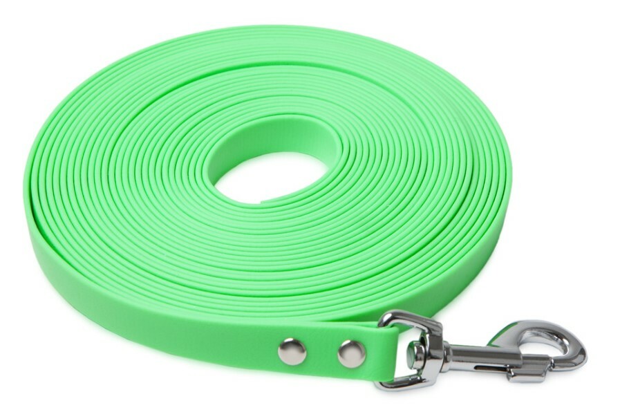 BioThanesta valmistettu jälkiliina, pituus 7,5m, leveys 13mm. Pistoolilukko. Liinassa ei ole käsilenkkiä. BioThane on kestävä materiaali, joka ei homehdu, haise eikä jäädy. BioThane on myös UV-valon kestävää, antibakteerista sekä helposti pestävä: ravat ja liat lähtevät raanan alla huuhtomalla. Liina ei myöskään takerru aluskasvillisuuteen.