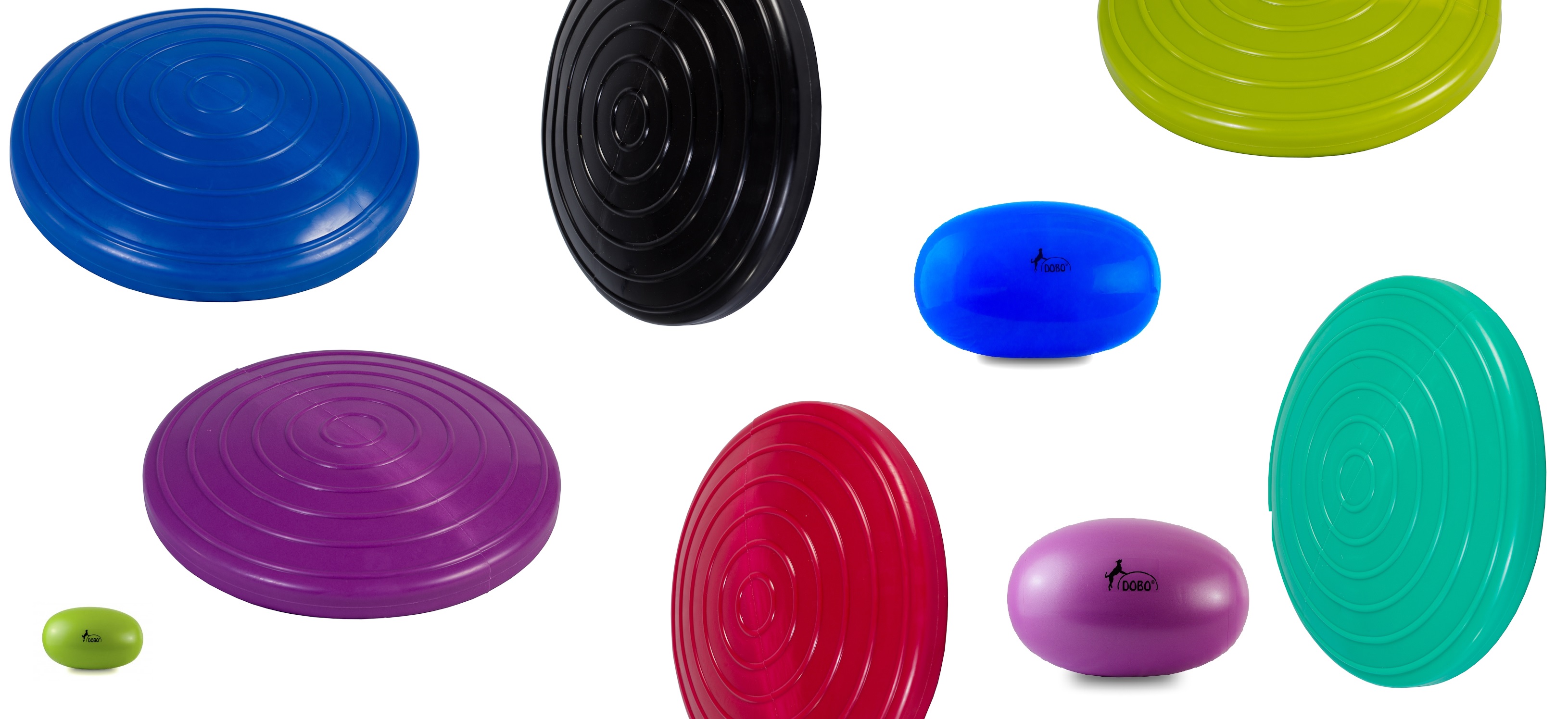 Kaikki tarvikkeet Doboon: dobo-pallot, tasapainotyynyt, puolipallot sekä kirjat. Dobo on vuonna 2010 Suomessa kehitetty koiran ja ohjaajan yhteinen liikuntalaji. Sen tavoitteena on sekä koiran että omistajan lihaskunnon, tasapainon, kehonhallinnan sekä liikkuvuuden parantaminen. Dobo-harjoittelun edut: