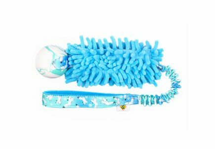 Houkutteleva vetolelu yhteisiin leikkeihin! Lelussa on pehmeä pallo, moppiosa sekä fleecevuorattu joustokahva. Lelun koko pituus on n. 50cm, josta moppiosa n. 15cm, kahvan leveys 25mm. Konepestävä 30 asteessa. Pehmeä Hoko-pallo sopii herkkäsuisemmillekin koriille, kovalle purijalle taas suosittelemme jotakin vahvempaa pallomallia.