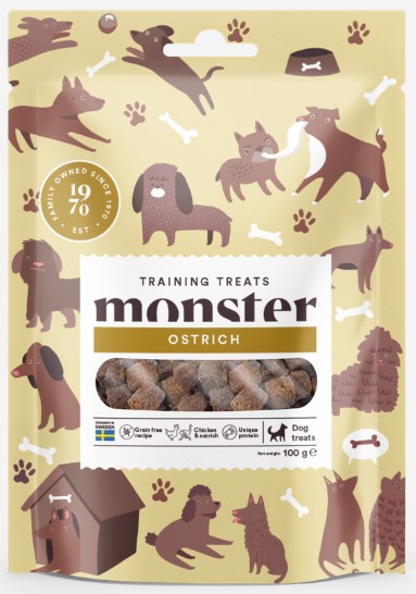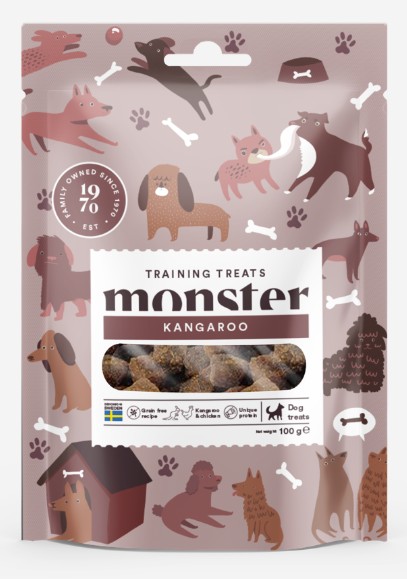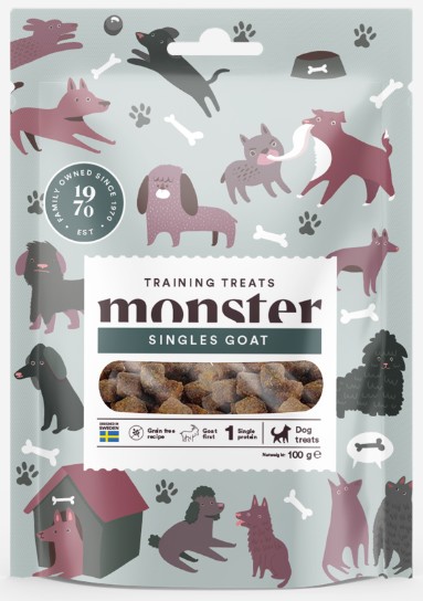Puolikosteat Monster-herkut sopivat mainiosti treeninameiksi. Namit ovat viljattomia ja valikoimassa on myös yhden proteiinilähteen tuotteita, joten myös allergikoille voi löytyä sopiva herkku.