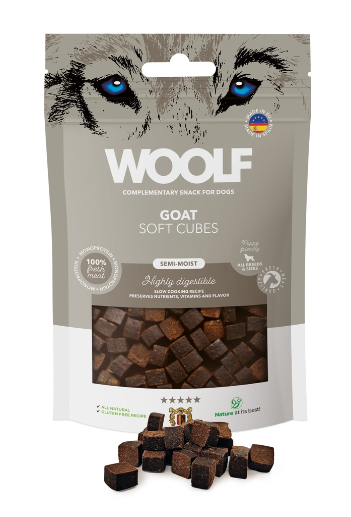 Woolf Soft Cubes -herkut ovat pehmeitä, maistuvia yhden proteiinilähteen nameja. Eri makuja. Helppo pilkkoa käsin vieläkin pienemmiksi paloiksi!
