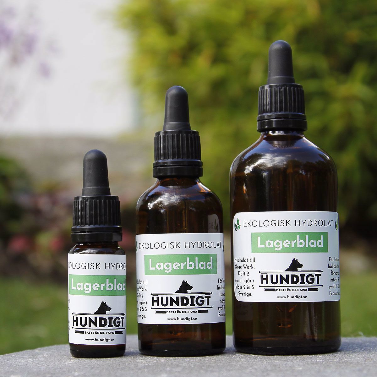 Nosework-hajutyöskentelyssä käytettävä riittoisa laakerinlehtihydrolaatti lasipullossa. Säilytetään jääkaapissa. Käytä treenatessa yhtä tippaa per piilo/purkki.